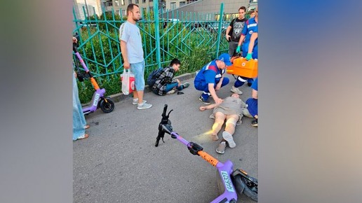 Серьезное ДТП с участием самоката случилось сегодня в районе Бутово. Молодой самокатчик на большой скорости врезался в пожилую женщину, гулявшую по тротуару вместе с девочкой. От столкновения с самокатом женщина плашмя упала на асфальт, у нее даже спала обувь, настолько сильным оказался удар. Самокатчик задел и девочку — она сильно ушибла голову. Судя по фото, досталось и самому самокатчику — он лежит на асфальте с подогнутой ногой, которую, скорее всего, повредил в этой аварии. Прохожие вызвали...