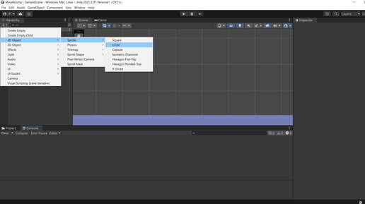 Логика стрельбы в Unity 2D и 3D ничем не отличается, поэтому данный материал можно использовать в любом проекте, разница будет только в использовании двух- или трехмерных позиций, векторов и объектов. Рассмотрим реализацию стрельбы в Unity 2D в игре с видом сбоку. Сначала необходимо подготовить объект, который будет выступать в качестве пули. Это может быть какой-то специальный спрайт, который нужно перетащить мышкой на игровую сцену, либо можно просто создать стандартный двумерный объект, например...