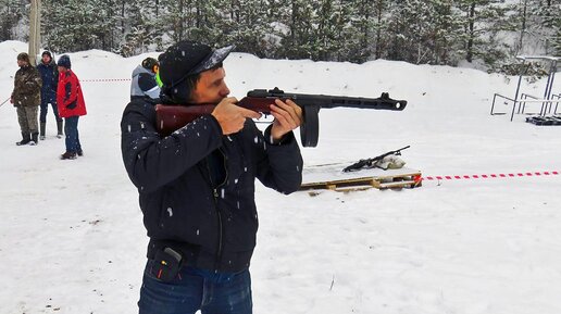 Стрельба из ППШ холостыми патронами.