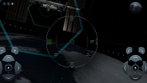 Как играть: 1) Значение каждого угла и координаты в момент касания со шлюзом должно быть не больше 0.2, а скорость -- меньше 0.080 м/с (поначалу можно разогнаться, но в конце скорость должна быть не больше данного значения) 2) На правом джойстике вы корректируете 3 угла корабля: поворот по крену (вращение по часовой-против часовой стрелки), тангажу (поворот вверх-вниз), рысканью (поворот влево-вправо) 3) На левом джойстике вы корректируете поступательное движение модуля: движение вперед-назад (кнопки...
