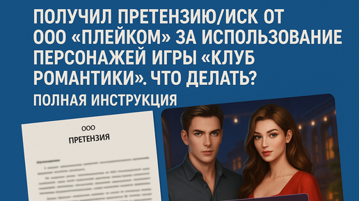 Получил претензию/иск от ООО «ПЛЕЙКОМ» за использование персонажей игры "Клуб Романтики". Что делать? Полная инструкция.