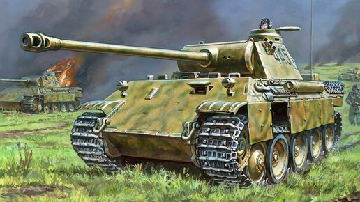 Танк "Пантера", по номенклатуре Вермахта - PzKpfw V Panther. Некоторыми считается лучшим танком ВМВ. Это, конечно, спорно, но одним из лучших его признают почти все. Задумывался как замена "четвёрке" — PzKpfw IV, основному на тот момент, но уже сдающему позиции советским "Т-34". Достоинства "Пантеры" вытекают из германского подхода и высокой технологической культуры, сложившейся в Третьем Рейхе. Танк имел хорошую оптику, орудие с высокой бронепробиваемостью и качественную (в начале своего производства) броню...