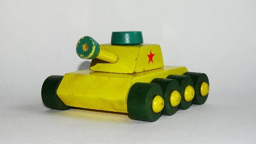 Приветствуем Вас, уважаемые читатели нашего канала! Сегодня мы расскажем Вам про два новых пополнения в нашей коллекции деревянной транспортной игрушки. Начнём мы с танка-конструктора Туринской фабрики детских игрушек. Состоял танк из четырёх деталей: корпуса с колёсами, башни, дула и люка башни. Для детей, собрать танк не составляло большого труда, всё интуитивно понятно и легко: дуло вставляется в отверстие башни, сверху башни вставляется люк, а стержнем от люка башня крепится к корпусу танка...