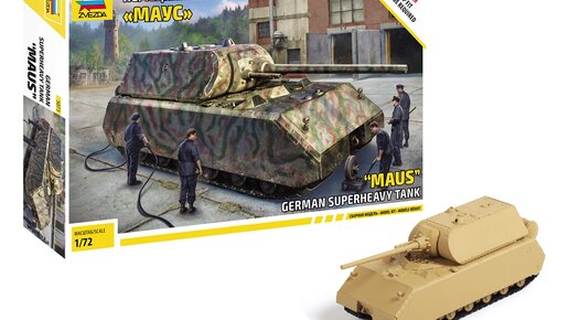 Добрый день уважаемые читатели и любители солдатиков и моделизма! Сегодняшний обзор будет посвящен отличной сборной модели от российской студии "Звезда" - Немецкий сверхтяжёлый танк Panzerkampfwagen VIII Maus в масштабе 1/72. Представляю вашему вниманию сборную модель сверхтяжелый танк под раскраску. Мы видим хорошую, качественного исполнения модель. Немецкий сверхтяжёлый танк Panzerkampfwagen VIII Maus был построен в 1943-1944 годах в качестве «танка прорыва» для преодоления укреплённых линий обороны противника...