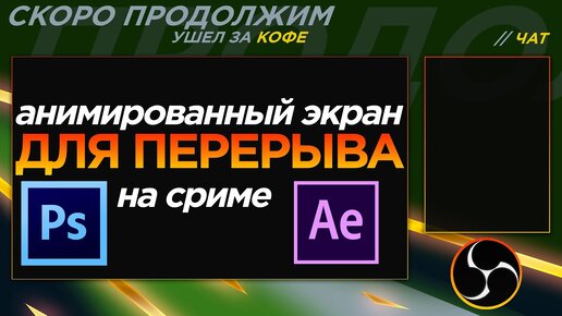 Продолжаем оформлять наши стримы! У каждого бывала ситуация когда срочно нужно сделать перерыв на стриме. Но не всех специальная сцена для этого. В этом уроке мы нарисуем в Photoshop и анимируем в after effects экран паузы с чатом...