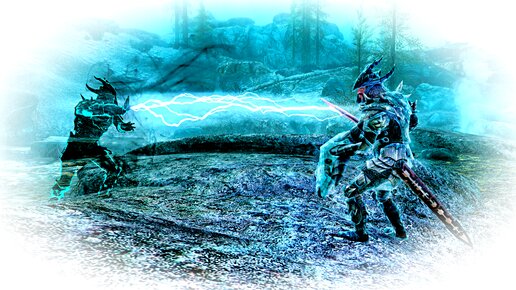 Обзор новых квестов Скайрима. … Обследуя горячие источники Истмарка, Довакин ещё издали - от Камня Атронаха - заметил в одном из водоёмов что-то чёрное и отправился туда посмотреть. В природной «ванне» овальной формы плавали чёрные части человеческого скелета. При приближении вода как будто расплескала вокруг тень, из которой появился меч: Немного повисев в воздухе, меч засветился и превратился в секиру: Секира повела себя точно так же – повисела, засветилась и обернулась мечом. Довакин стоял и глазел на эту диковинку, не зная, что и думать...