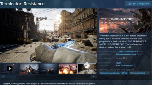 Всем привет дорогие гости канала, с вами playtime и на обзоре Terminator: resistance, игра 2019 года за 1399 рублей. (Картинки ниже) История построена по канону. Причем не только по первым двум фильмам,...