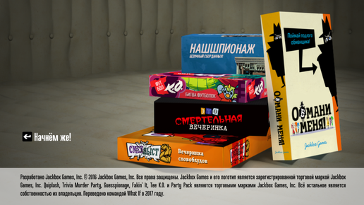 В этой статье я подробно разберу шестой The Jackbox Party Pack, расскажу о каждой мини-игре в нём и скажу стоит ли его покупать или нет. Приятного чтения! Смотри также: Обзор на первый The Jackbox Party Pack Обзор на второй The Jackbox Party Pack Обзор на третий The Jackbox Party Pack Обзор на четвёртый The Jackbox Party Pack Обзор на пятый The Jackbox Party Pack The Jackbox Party Pack 6 - сборник из 5 мини-игр для компаний: Trivia Murder Party 2, Role Models, Joke Boat, Dictionarium и Push The Button...