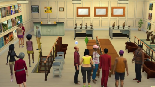 Арт-галерея моих симов, где можно купить картины, статуэтки, мебель, всякие вкусняшки и посидеть в кафе. Все сделано руками моих симов. А магазинчик сделала и спланировала тоже сама. Покупатели выбирают и покупают...