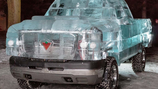 На создание этого чуда ушло около 5 т льда. Раму и агрегаты позаимствовали у Chevrolet Silverado. Дорожные испытания прошли в декабре 2014 года в Онтарио: в сорокаградусный мороз пикап проехал 1,6 км со средней скоростью 20 км/ч. Весь этот челлендж устроили ради рекламы морозостойких аккумуляторов...