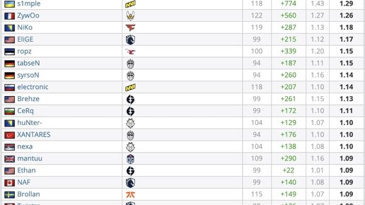 Рейтинг ТОП-20 лучших игроков по CS:GO По мнению HLTV