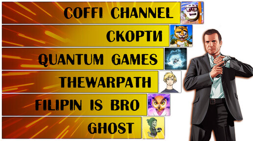 1 место топа занимает ютубер TheWarpath 2 место топа занимает ютубер Coffi Channel Описание Доброго времени суток друзья Меня зовут COFFI, и этой мой канал, посвященный игровой тематике. На канале вы увидите море веселых прохождений, обзоров, лестплеев по таким играм, как SAMP, CS:GO, GTA 5 Online, RUST и многое другое...