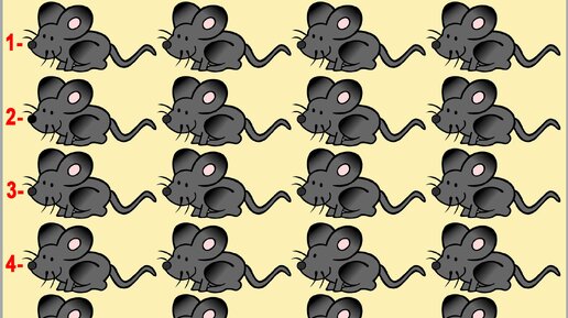 Здравствуйте, дорогие подписчики и гости канала! Представляю вам новое задание на внимательность. Необходимо найти три мышки, которые отличаются от всех остальных. Задание средней сложности! Оптимальное время поиска 40 секунд...