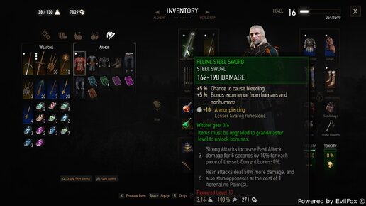 Ведьмак 3 Убрать требование к уровню предмета 1.31