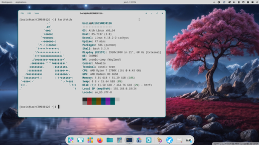 Установка CachyOS's Cosmic DE вместе с ядром 6.18.2 на Arch Linux ( bare metal )