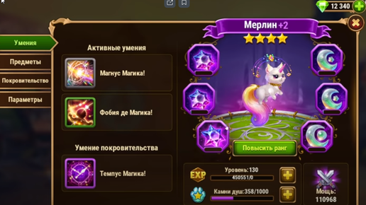 Хроники Хаоса питомец Мерлин бои в Войне Гильдий мощные пачки героев, умения Мерлина