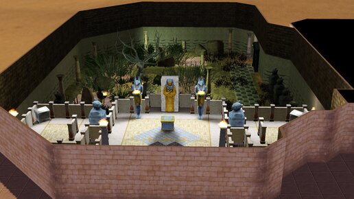 Привет читатель! Продолжаем исследовать Великую пирамиду. По установке статуй вышла небольшая ошибочка. Так что не повторяйте. После установки двух статуй появился пол с пятками. Сим встал и цепь с двери упала. За дверью – большая груда камней, мешающие пройти через дверь. А там – еще груда камней забившиеся в проходе арки. За аркой комната, где на полу спрятались огненные ловушки. Их красили другим цветом. Ronald пострадал от огненной ловушки. Он потратил целых два портативных душа, но не помогло...