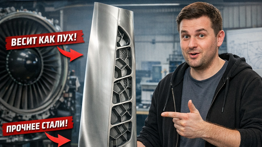 Привет, друзья! Держитесь за стулья, потому что сегодня мы поговорим о вещи, которая звучит как бред сумасшедшего профессора, но на деле — спасает российскую авиацию прямо сейчас. Представь: ты берешь в руки огромную лопатку от турбины самолета. Она размером с человека. Твой мозг ожидает, что сейчас руки отвалятся от тяжести металла (титан всё-таки!). Ты напрягаешься, рывок... и чуть не падаешь назад. Потому что эта штука в твоих руках весит почти ничего. Она словно надувная. Инженеры ОДК (Объединенная...