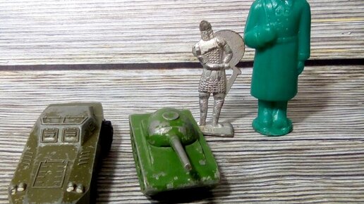 Хранятся у меня зачем-то всякие солдатики и военные машинки. Разных годов, даже точно не знаю каких, есть и не такие уж старые. Так, примерно 2005 года. Они, конечно, не раритетные, но характерные для своей эпохи. Вот какие: Солдат Советских войск из пластмассы Известная игрушка, высотой 10 см, полый внутри. С автоматом Танк металлический Длина 6 см. Башня крутится Там какая-то буква М Еще одна...