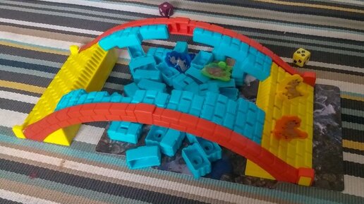 Наверняка вы все видели в Фикс Прайсе игру "Волк и козлята", некоторые купили своим ребятишкам... Я давно поглядывала на эту игру, ну как давно...ПОЛГОДА... и наконец-то решилась, купила. Только в процессе поняла что игра с подвохом... Ну, а вначале? : Кто-то из участников играет за волка, кто-то за козлят. У каждой команды свой кубик и с изображением следа лап волка или копыт козлят. Сколько выпадает лап\копыт-столько ходов, плюсик на кубике у козлят - достать кирпичек и восстановить мост,...