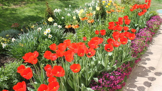 Те, кто живет в своем доме или на даче, всегда украшает территорию перед домом цветами. Это моя клумба перед домом. И здесь у меня много лет назад было посажено больше 150 луковиц тюльпанов. Я уже писала, что у меня очень много тюльпанов, и я их весной люблю считать. (Получаю от этого какое-то удовольствие :)) Но моя мама говорила : "Волк и считанных овец таскает", такая у нее была очень правильная поговорка. Мой "палисадник" отличается от нормального тем, что здесь нет забора. И разумеется с того момента, как я здесь посадила цветы, их почти каждый год воруют...