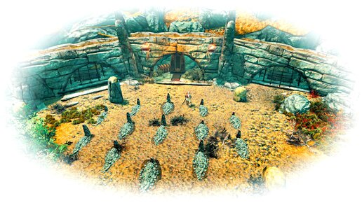Владение Вайтран. Привал Хамвира находится в тундре, сравнительно недалеко от Вайтрана. Суть этого сооружения – древнее кладбище, что всё же является редкостью в Скае. Обычно древние норды старались хоронить своих мертвецов в грандиозных подземных сооружениях – криптах. Разумеется, при появлении героя здесь восстаёт нежить – в основном скелеты, вооружённые мечами и луками, а из стоящего вертикально саркофага вылезает драугр...