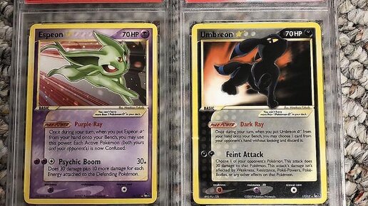 Gold Star карточки сами по себе очень редкие, но Эспеон и Амбреон особенно редкие даже в этой категории. Оригинальные карточки Эспеон выдавали участникам Pokemon Players Club в обмен на 50 000 очков! Амбреон стоит $5000 и Эспеон $6000. Венузавр один из самых коллекционируемых покемонов, и его первое издание, особенно в хорошем состоянии, может очень прилично стоить. И недавно одна из таких карт была куплена за $8000. Сияющий Чаризард — самый первый блестящий покемон! Отличительная черта этой карты также в том, что на изображении блестящим элементом является не фон карты, а сам Чаризард...