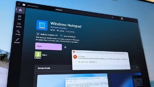 Анекдот подъехал: Microsoft умудрилась угробить «Блокнот», «Ножницы» и ещё пачку стандартных приложений — при запуске вылетает ошибка
