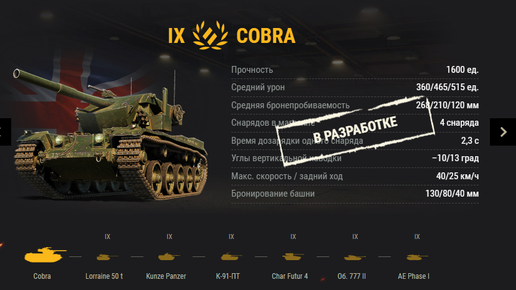 Cobra — британский акционный барабанный танк IX уровня, который выдаётся за жетоны VII+ сезона Боевого пропуска. К сожалению, получить танк именно в этом сезоне не удастся, ибо стоимость заявлена в 24 жетона, а максимум получить сможете только 21. Поэтому танк до сих пор не выпущен в официальный релиз. Что это вообще за танк-то такой? Взгляд на танк Cobra имеет магазинную систему заряжания на четыре снаряда. Вероятно, вы знаете такого "персонажа" из Новогодних коробок, как Caliban? И его "шедевральную"...