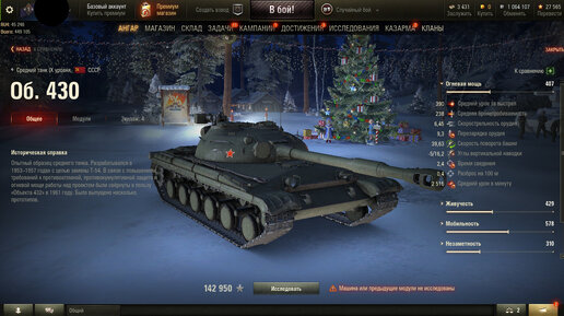 Многие идут к советским топам, часто это ст и тт. Объект 430у часто один из них, и перед ним стоите не менее интересная машина, под названием объект 430. Он разрабатывался как замена для Т-54, но когда был готов уже не имел большого потенциала, а жаль, хороший танк получился. Это танк мне сразу понравился, за свою хорошую мобильность, приятное орудие с перезарядкой около 8 секунд и с альфой 390 единиц. В итоге это даёт нам приличный урон в минуту около 2950 единиц, зависит от оборудки и экипажа...