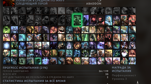 Испытание героев-это квест, суть которого одержать хотя бы одну победу за каждого из 119 героев...