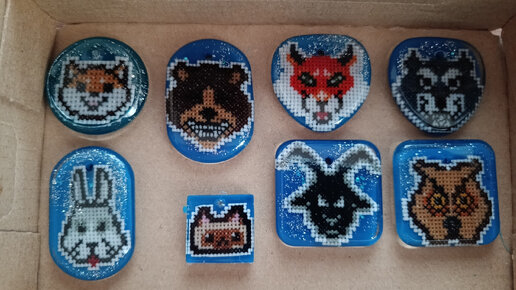 Я геймер, но давно уже не из тех, кто играет сам, а из тех кто смотрит прохождения на YouTube. Нравится Визуальная новелла Зайчик. У неё очень запутанный сюжет и большая вариативность выборов и, соответственно, концовок. Интересно наблюдать за судьбой главных персонажей новеллы, на фоне того, что в деревне, в которой они проживают, начали пропадать дети. Вдохновившись, захотела сделать брелоки с персонажами. По картинке из интернета сделала схемы для вышивки. И всё так же залила эпоксидной смолой...