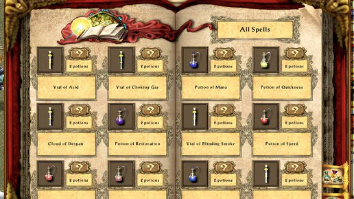 В Heroes of Might & Magic IV есть своего рода одноразовые заклинания, с разными эффектами. Это зелья. Несмотря на их ограниченное применение, они бывают очень полезны, особенно когда у вас есть герой не маг и не активный воин. Например, стоит какой-нибудь генерал и ничего не делает (ну, помимо того что дает атаку и защиту своим воинам). Раз ты генерал, значит тебе можно ничего не делать? Э брат, так не пойдет - в нашей рабоче-человеко-монстрячьей армии все пристроены к делу. Поэтому ты не стой столбом в углу, а гадь врагам зельями...