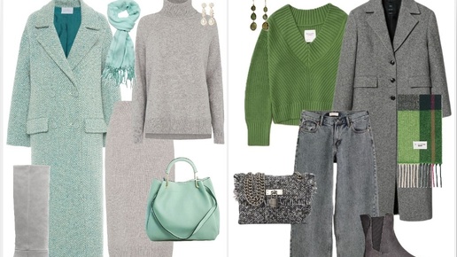 Серый + зелёный - идеальное сочетание для стильных осенних образов