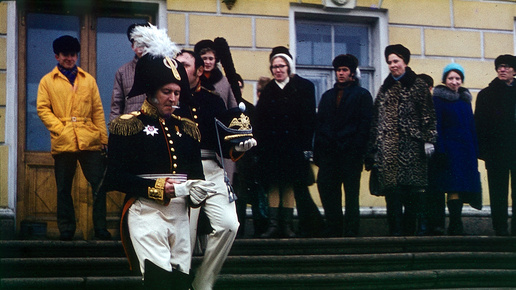 В 2025 году фильму "Звезда пленительного счастья" исполняется 50 лет, а с восстания декабристов пройдет 200 лет. И надо же так случиться — ко мне попали снимки, сделанные фотографом-любителем во время съёмок сцены восстания на Сенатской площади Правда, сначала я их не признал, сделав неправильные выводы о годе их съемки. Во-первых, слайды лежали в одной коробке с другими, подписанными как "1989 год". Во-вторых, на одной из фотографий был виден дорожный знак "Главная дорога", который показался мне слишком современным...