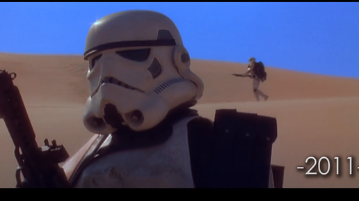 Как мы знаем, первые эпизоды звёздных войн снимались в далёких семидесятых и графика там мягко говоря была не очень, большинство было сделано из кукол и реальных ландшафтов, графики было мало.