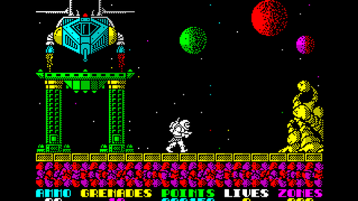 Сегодня мы вспомним весьма неплохой платформер для ZX Spectrum - Exolon. В этой игре нам предстоит управлять неким космонавтом, который путешествует по вражеской планете. Ему противостоят полчища техники: пушки, разнообразные летающие механизмы, ракеты, а по земле разбросаны мины. Соприкосновение с любым врагом означает мгновенную смерть. Но главный герой тоже не лыком шит - он может отстреливаться от врагов, а также выпускать ракеты. Но всегда нужно помнить, что количество боеприпасов ограничено и, возможно, иногда придется их экономить...