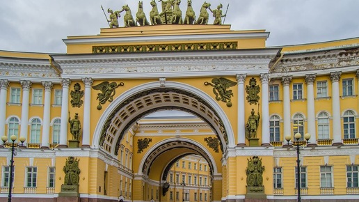 ### Арка Главного Штаба: Символ Империи и Истории Арка Главного Штаба, расположенная в самом сердце Санкт-Петербурга, представляет собой один из самых ярких примеров архитектуры царской эпохи. Построенная в первой половине XIX века, она не только служила важным административным центром, но и стала символом русской военной мощи и бюрократического устройства империи. Строительство арки началось в 1806 году по проекту архитектора Василия Стасова, который в то время уже зарекомендовал себя как мастер неоклассической архитектуры...