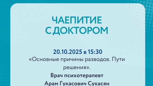 Лечебно-диагностический центр «ДиЛУЧ» приглашает жителей и гостей Анапы на тёплые встречи с ведущими специалистами центра. В уютной атмосфере за чашечкой чая каждый понедельник и четверг вы сможете задать важные вопросы, узнать о профилактике и лечении различных заболеваний, а также получить профессиональные рекомендации, основанные на многолетнем опыте...