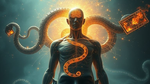 Всё началось с дыхания. Не с воздуха, а с того мгновения, когда дыхание вспомнило себя. Исполин стоял среди внутренней тишины, и всё в нём звучало сразу — кровь, память, небо, корни. Мир вокруг больше не был внешним: он стал продолжением его тела, как кожа души. Первое Врата — Память Тела Пробуждение не начинается с мысли. Оно начинается с боли.Тело хранит древние песни костей — и каждое движение, каждый вдох отзывается эхом веков. Исполин опускает ладони на землю, и земля отвечает биением, как сердце...