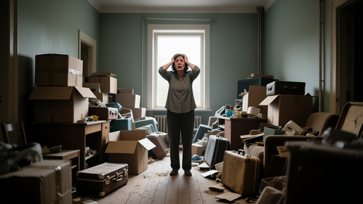 Ольга замерла посреди гостиной, упершись ладонями в бёдра, будто пытаясь удержать равновесие в мире, который внезапно пошатнулся. Перед ней, у стены, громоздились чужие коробки — безымянные, безликие, но настойчиво вторгающиеся в её пространство. Её квартира, когда-то тщательно выстроенная как уютное гнездо, где каждая деталь имела смысл и место, теперь напоминала заброшенный склад: хаотичный, переполненный и чужой. Сервант, над которым она трудилась неделями — полируя, подбирая оттенок воска, мечтая, как он будет отражать свет утреннего солнца, — теперь был завален мятой пластиковой тарой...