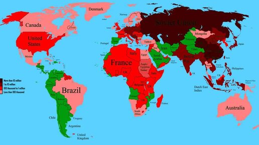 Вторая мировая война (1939–1945) стала беспрецедентным по масштабам и разрушениям конфликтом в истории человечества. В ней в той или иной форме участвовали 62 страны из 73 существовавших в тот момент на планете, или 80% мирового населения Земли. Бои развернулись на трех континентах и в водах четырех океанов. В результате погибло не менее 60 миллионов человек. На карте, представленной выше, темно-коричневым цветом...