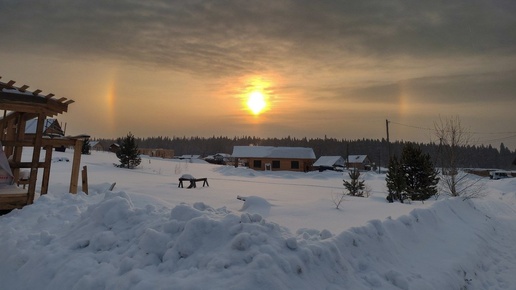 Накануне вечером, 5 декабря, жители села Корнилово Томской области стали свидетелями необычного природного явления: вокруг солнца появилось яркое световое кольцо, известное как солнечное гало. Оно возникло из-за преломления солнечных лучей в кристаллах льда, находящихся в высоких перистых облаках. Местные жители охотно делились фотографиями и впечатлениями, называя происшествие «тихим чудом» и «красотой, остановившей мгновение»...