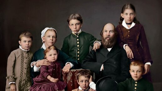 Семья Ульяновых. Стоят (слева направо): Ольга (8 лет), Александр (13 лет), Анна (15 лет). Сидят (слева направо): Мария Александровна (44 года) c дочерью Марией (1 год) на руках, Дмитрий (5 лет), Илья Николаевич (48 лет), Владимир (9 лет)