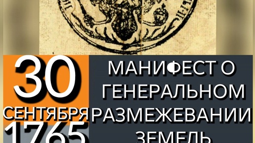 📆 30 СЕНТЯБРЯ 1765 ГОДА ЕКАТЕРИНА II ИЗДАЛА «МАНИФЕСТ О ГЕНЕРАЛЬНОМ РАЗМЕЖЕВАНИИ ЗЕМЕЛЬ ВО ВСЕЙ ИМПЕРИИ