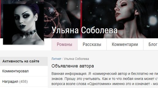 Вдохновляет ли Вас чужой успех? Меня очень, поэтому сегодня я расскажу о еще одном топовом (для меня) Авторе ЛитНет, любовь к которому началась с бесподобного Цикла Легенды о Проклятых (впереди много стекла, так что держитесь) Ульяна зарегистрировалась на ЛитНет 02 августа 2015 года и на момент выхода статьи выложила на портал 71 (!!!) роман. Нехитрые подсчеты говорят нам, что это минимум месяц на роман. И это при том, что у Автора большая семья (трое детей и столько же домашних любимцев, не считая...