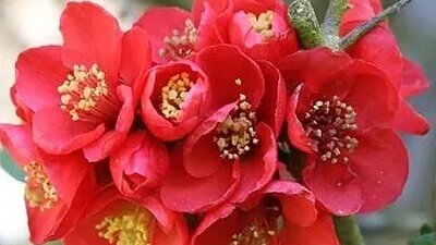Размер и форма: Раскидистый кустарник, высота 1-3 м. Быстрый рост. Долговечен. Листва: Темно-зеленые, блестящие листья, красноватые при распускании. Цветение: Май, одновременно с распусканием листьев. Ярко-красные, простые цветки (3-5 см в диаметре), собраны в кисти (2-6 шт.). Плоды: Диаметром около 5 см, зеленые, при созревании светло-желтые...