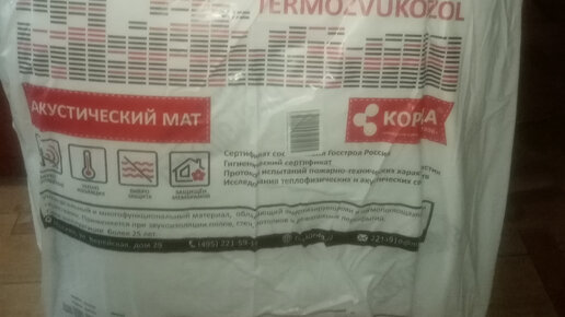 Акустический мат ВиброШумоизол - распаковка. Пластиковый пакет белого цвета мы вскрыли с одной стороны, отрезав край ножницами. Одеяло внутри плотно свернуто для удобной транспортировки и хранения. В таком состоянии оно занимает мало места. Полотно, с одной стороны имеет белый цвет с фирменным логотипом, обратная поверхность полностью чёрная. Мы достали свёрток из упаковки и аккуратно развернули его. Расстелили так, чтобы его удобно было резать. Внутри одеяла находится шумо и звукоизоляционный материал, который предназначен также для поглащения вибрации...