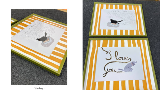 История, которая началась с постеров про котика и собачку 😀. На них можно было смотреть только с улыбкой. Чем всё закончилось сами увидите. Референсом для развития идеи послужило фото из Pinterest, где были оранжевые акварельные мазки на паспарту. Я сказала свою любимую фразу : «а почему бы и да»…. Иииии тут началась магия! Меня зовут Антонина, у нас с мужем семейное арт-бюро. Мы про любовь к своему делу, к близким и к дому. Считаем, что в каждой стене есть своя история. Подписывайтесь и вдохновляйтесь...