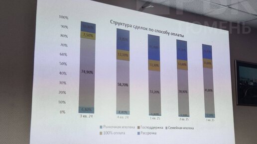 Семейная ипотека стала главным драйвером рынка в Тюменской области С начала года ее доля в сделках выросла с 53% до 62%, в то время как популярность рассрочки снизилась (с 31 до 19%). Наличные расчеты остаются на стабильном уровне (около 13%). Об этом стало известно на заседании пресс-клуба «Союза строителей»...